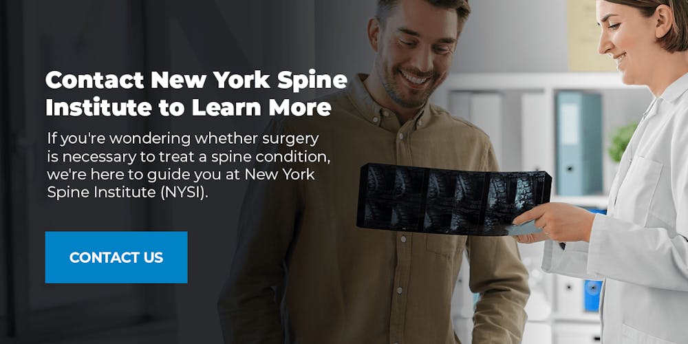 If you’re wondering whether surgery is necessary to treat a spine condition, we’re here to guide you at New York Spine Institute (NYSI). We are one of the largest multispecialty spine and orthopedic centers in the tri-state region, serving patients in New York City and throughout the metropolitan area. Our expert spine specialists and surgeons have experience treating many types of spine conditions, including complex diagnoses.