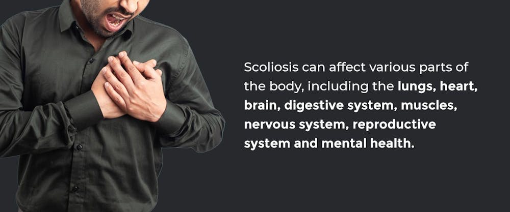 قد يبدو العمود الفقري وكأنه قائم بذاته، لكنه في الواقع مرتبط بشكل معقد بجسمك بالكامل، خاصة لأنه يرتبط مباشرة بدماغك. عندما يكون عمودك الفقري منحرفًا، يمكن أن يؤثر ذلك على بقية جسمك بطرق عديدة – مما يؤدي إلى تعطيل الاتصال بين الدماغ والجسم. ونتيجة لذلك، يمكن أن يؤثر الجنف على الصحة العامة لجسمك.