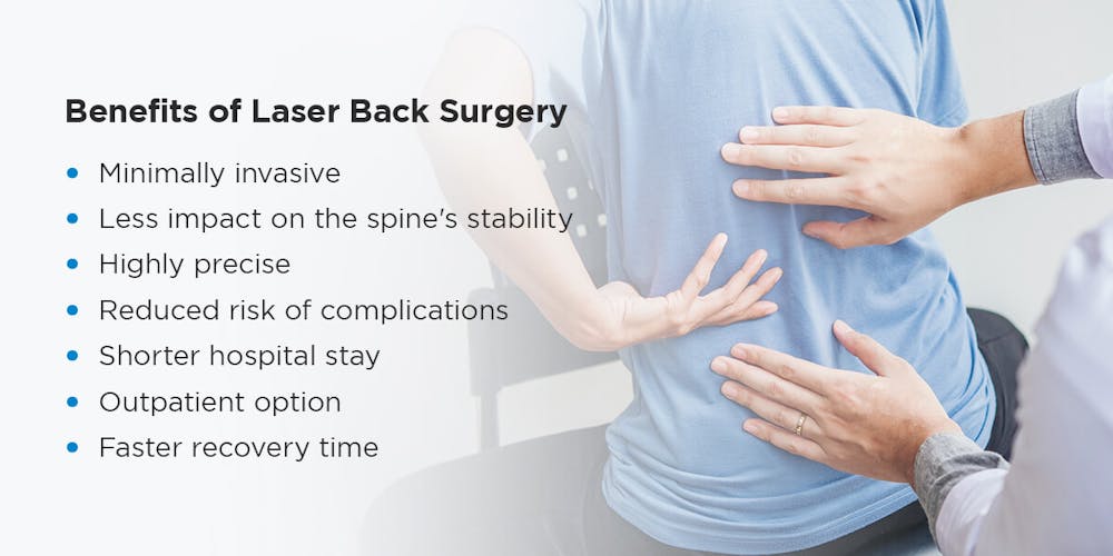 لیزر بیک سرجری ریڑھ کی ہڈی کے کچھ خدشات کا علاج کر سکتی ہے جب غیر جراحی کے اختیارات کام نہیں کرتے ہیں۔ اس طریقہ کار میں کم سے کم حملہ آور جراحی کا طریقہ کار شامل ہے جو روایتی کھلی سرجری کے مقابلے میں کم درد اور داغ کے ساتھ مخصوص ریڑھ کی ہڈی کے حالات کا مؤثر طریقے سے علاج کر سکتا ہے۔ یہ تیزی سے بحالی کا وقت بھی پیش کرتا ہے۔