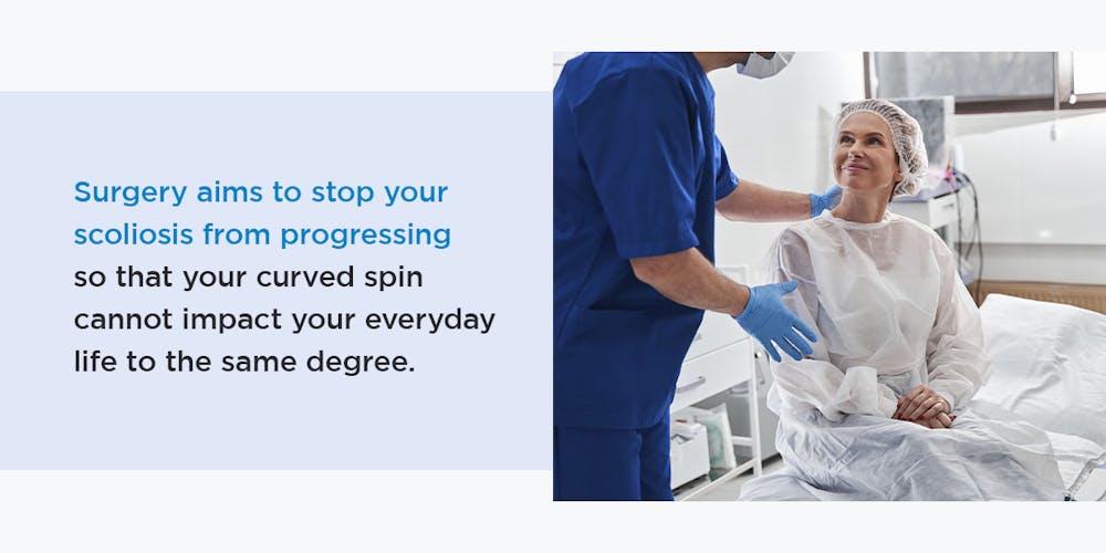 जबकि आपका डॉक्टर हल्के स्कोलियोसिस के लिए बैक ब्रेस की सिफारिश कर सकता है, गंभीर वक्रता के लिए सर्जरी अक्सर सबसे अच्छा विकल्प है। बैक ब्रेस आपके स्पाइनल कर्व को ठीक नहीं करेगा, लेकिन यह इसे आगे बढ़ने से रोक सकता है। स्पाइनल फ़्यूज़न सर्जरी भी आपके कर्व को आगे बढ़ने से रोक सकती है, लेकिन यह अक्सर गंभीर मामलों के लिए आरक्षित होती है। आप दोनों उपचार विकल्पों का पता लगाना चाहेंगे और अपने स्कोलियोसिस के लिए सर्वोत्तम कार्रवाई के बारे में अपने स्वास्थ्य देखभाल प्रदाता से परामर्श करना चाहेंगे।
