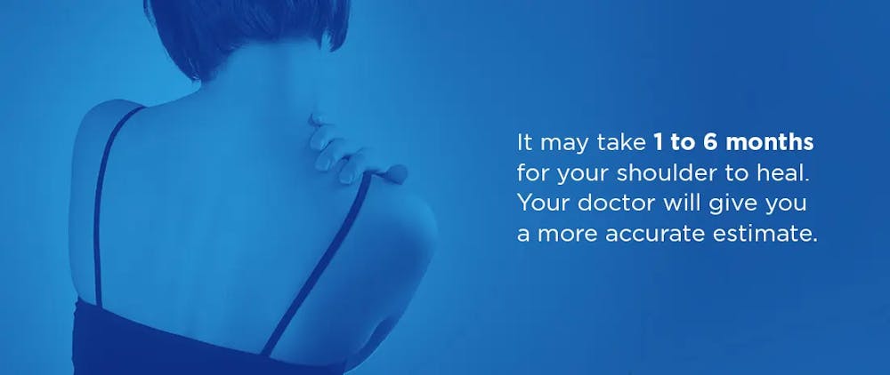 어깨가 회복되는 데 걸리는 시간과 정상적으로 어깨를 사용하는 데 걸리는 시간은 수술 중 의사의 조치에 따라 다릅니다. 예를 들어 어깨 손상의 유형과 정도에 따라 어깨가 치유되는 데 1~6개월이 걸릴 수 있습니다. 담당 의사가 더 정확한 견적을 제공할 수 있습니다.