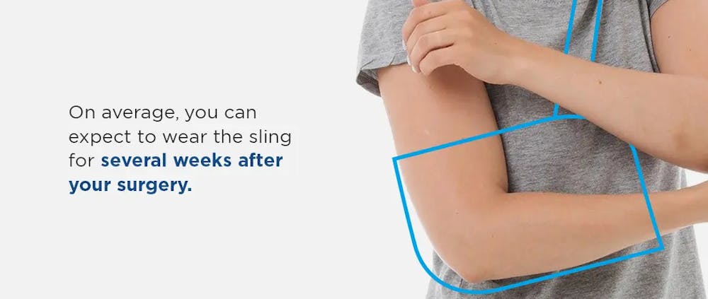 대부분의 경우 수술 직후에는 어깨가 회복되는 동안 팔의 움직임을 제한하기 위해 슬링을 착용하게 됩니다. 하루에 몇 번씩 슬링에서 팔을 꺼내 팔꿈치를 펴고 손가락을 부드럽게 움직여도 괜찮은지 의사에게 문의하세요. 수술 후 슬링에 머무는 시간은 수술의 강도에 따라 달라집니다.