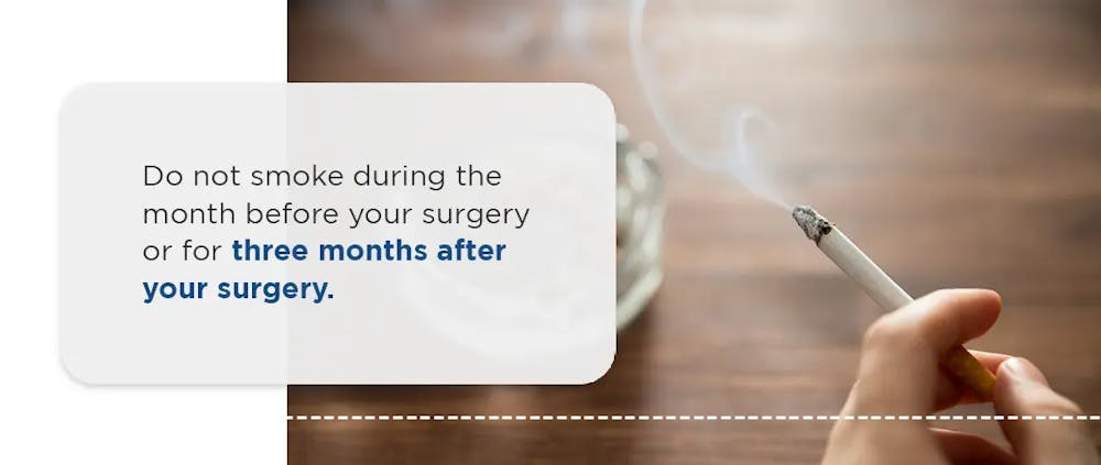 - 수술 전 한 달 동안이나 수술 후 3개월 동안은 담배를 피우지 마세요.
