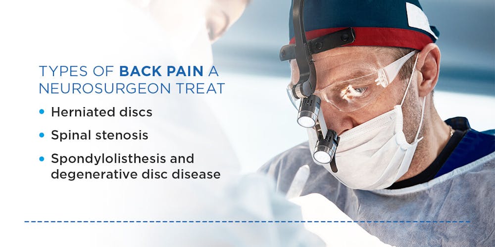 神經外科醫生治療任何影響脊髓或椎管的背痛來源。 因此,他們治療 許多不同類型的背痛。 這裡僅舉幾個例子: