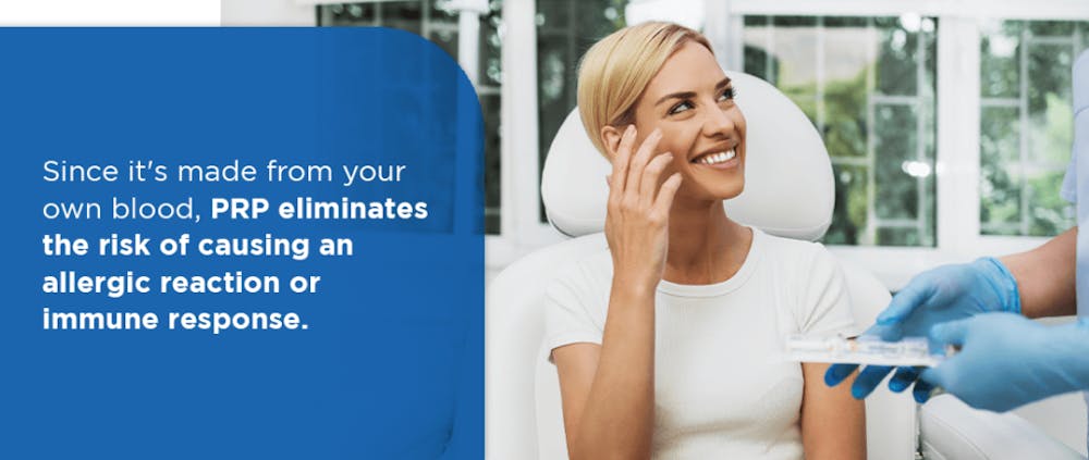 Les injections de PRP sont autologues, ce qui signifie que les cellules utilisées pour le traitement proviennent du même individu. La préparation autologue des PRP signifie qu’ils sont intrinsèquement sûrs et exempts de maladies transmissibles. Comme il est fabriqué à partir de votre propre sang, le PRP élimine le risque de provoquer une réaction allergique ou une réponse immunitaire.
