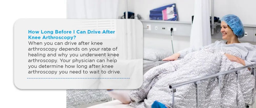 O momento em que você poderá dirigir após a artroscopia do joelho depende do seu ritmo de recuperação e do motivo pelo qual foi submetido à artroscopia do joelho. Seu médico pode ajudá-lo a determinar quanto tempo após a artroscopia do joelho você precisa esperar para dirigir. Após a artroscopia do joelho, os pacientes não podem dirigir enquanto estiverem usando uma cinta ou gesso.
